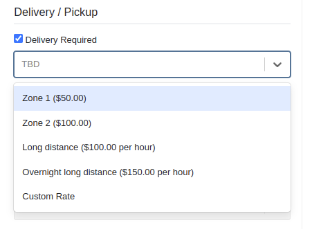 Flyntlok now supports preset pickup & delivery rates for Rental Contracts. When a location has preset rates configured, you will be prompted to select from them when creating a new Rental Contract or when updating an existing Contract’s “Pickup” or “Delivery” details.