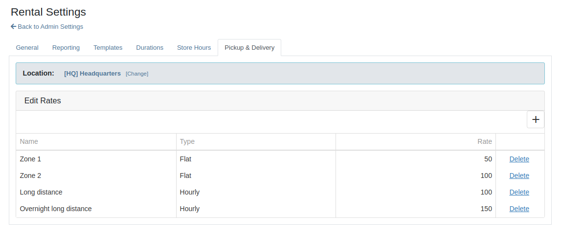Preset Rental and Delivery Rates